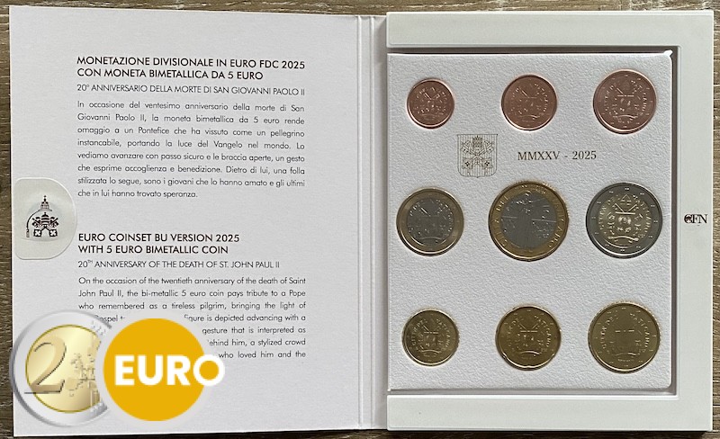Mit alle Münzen von 1 Cent bis 2 Euro + 5 Euros 20. Jahrestag des Todes von Johannes Paul II.