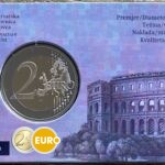 This special 2 euro commemorative coin honors the Amphitheatre of Pula, one of the best-preserved Roman arenas in the world. This impressive 1st-century structure symbolizes Croatia’s rich heritage and history.