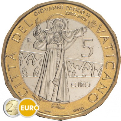 With the coins from 1 cent to 2 euro + 5 euro 20th anniversary of the death of John Paul II