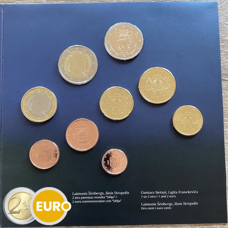 Contiene las monedas de 1 céntimo a 2 euros + 2 euros conmemorativas Escudo de armas de Sēlija