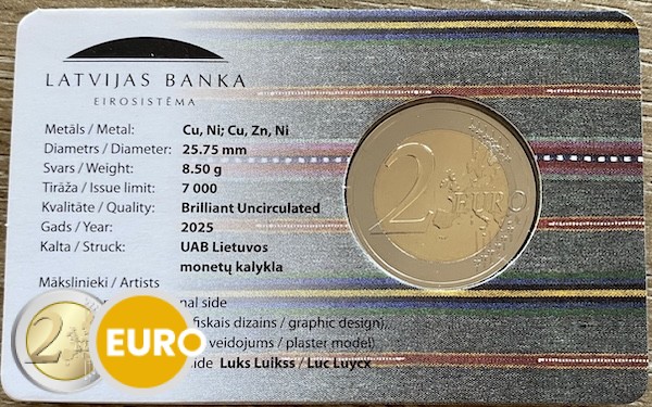 This 2 euro commemorative coin honors the Coat of Arms of Sēlija, a historic region in Latvia. The emblem, with its symbolic elements, reflects the rich history and identity of Sēlija within Latvian culture.