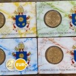 Each coincard contains the 50 cent 2024 coin from Vatican City in BU quality and a 1,25 euro, 1,30 euro, 2,45 euro or 3,20 euro stamp