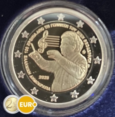 Cette pièce de 2 euros commémorative rend hommage au 100e anniversaire de la naissance de Mikis Theodorakis, compositeur et chef d’orchestre grec légendaire. Sa musique, dont le célèbre Sirtaki, incarne la culture grecque et la lutte pour la liberté et la justice.