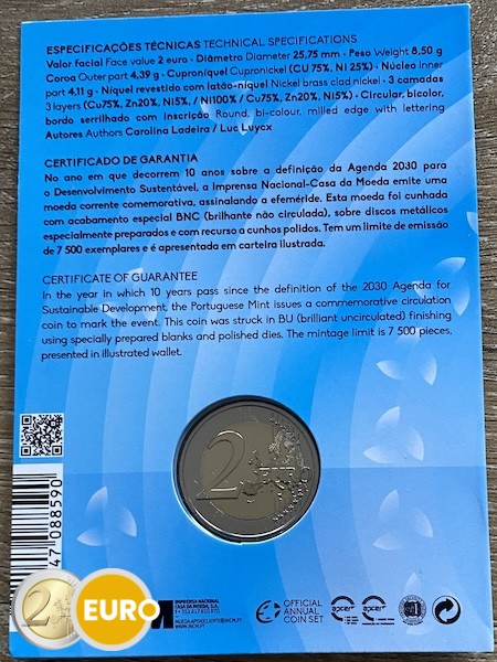 Cette pièce de 2 euros commémorative est dédiée au développement durable. Elle met en avant l’importance de la durabilité écologique, économique et sociale, en accord avec les efforts mondiaux pour un avenir meilleur.